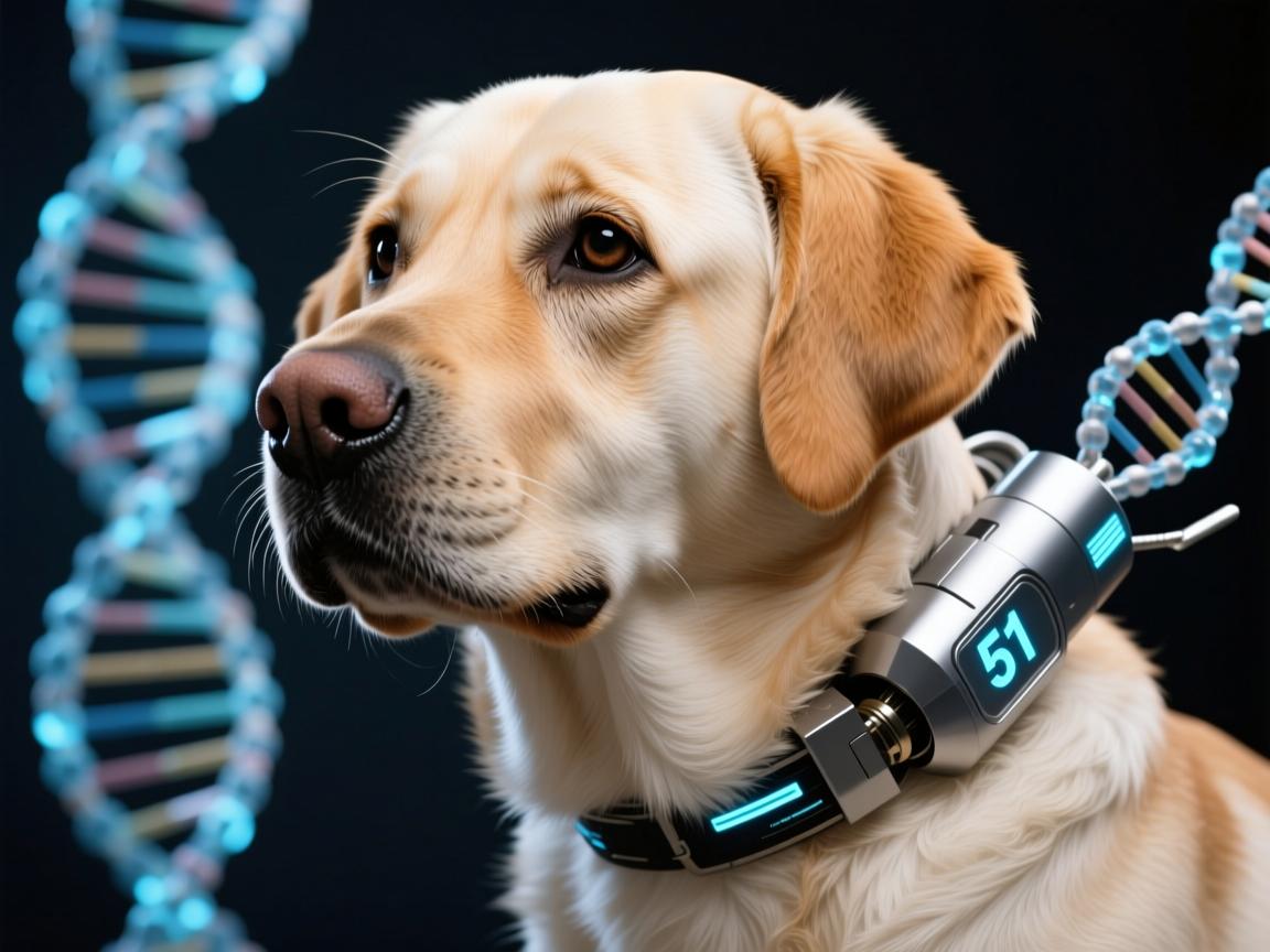 基因重塑:V51的颠覆性诞生 V51的诞生,源于一场近乎偏执的“完美伴侣犬”追求,传统拉布拉多虽以温顺忠诚著称,但髋关节发育不良、渐进性视网膜萎缩等遗传病如影随形,V51的研发团队动用了前沿的CRISPR-Cas9技术,对拉布拉多基因组进行了超过20处精准编辑。